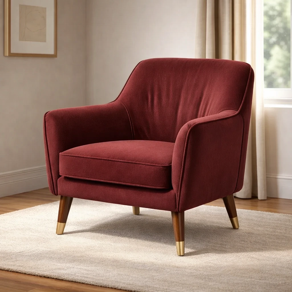 Material: Polsterung aus Samt, Beine aus massivem Holz mit Messingverzierung